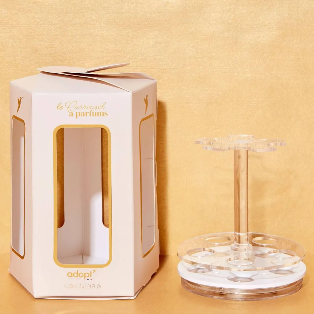 Fragrance Your Way With The Adopt Fragrance Carousel, Which Holds The 5 Fragrances Of Your Choice. Whether Gourmand, Fruity, Floral, Sunny Or Delicate, You’Ll Find An Overview Of The Fragrances In Our Collection On This Delightful Display. Bye-Bye Single Fragrance, Hello Fragrances That Can Be Changed To Suit Your Moods